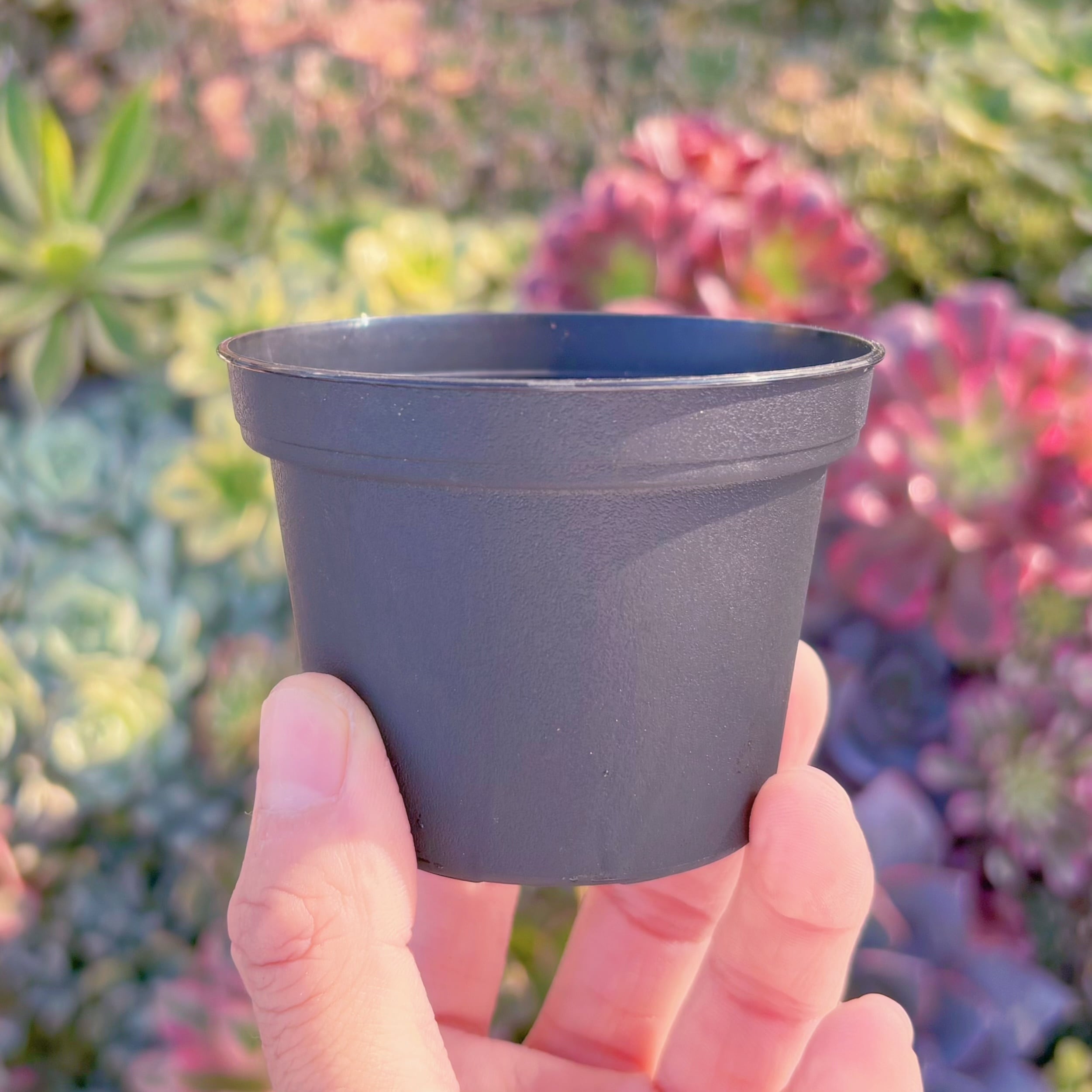 るる農園で日常的に使用している、排水穴付きPPプラスチック製の7cm鉢です。 多肉植物の育成に使いやすい定番サイズ。
