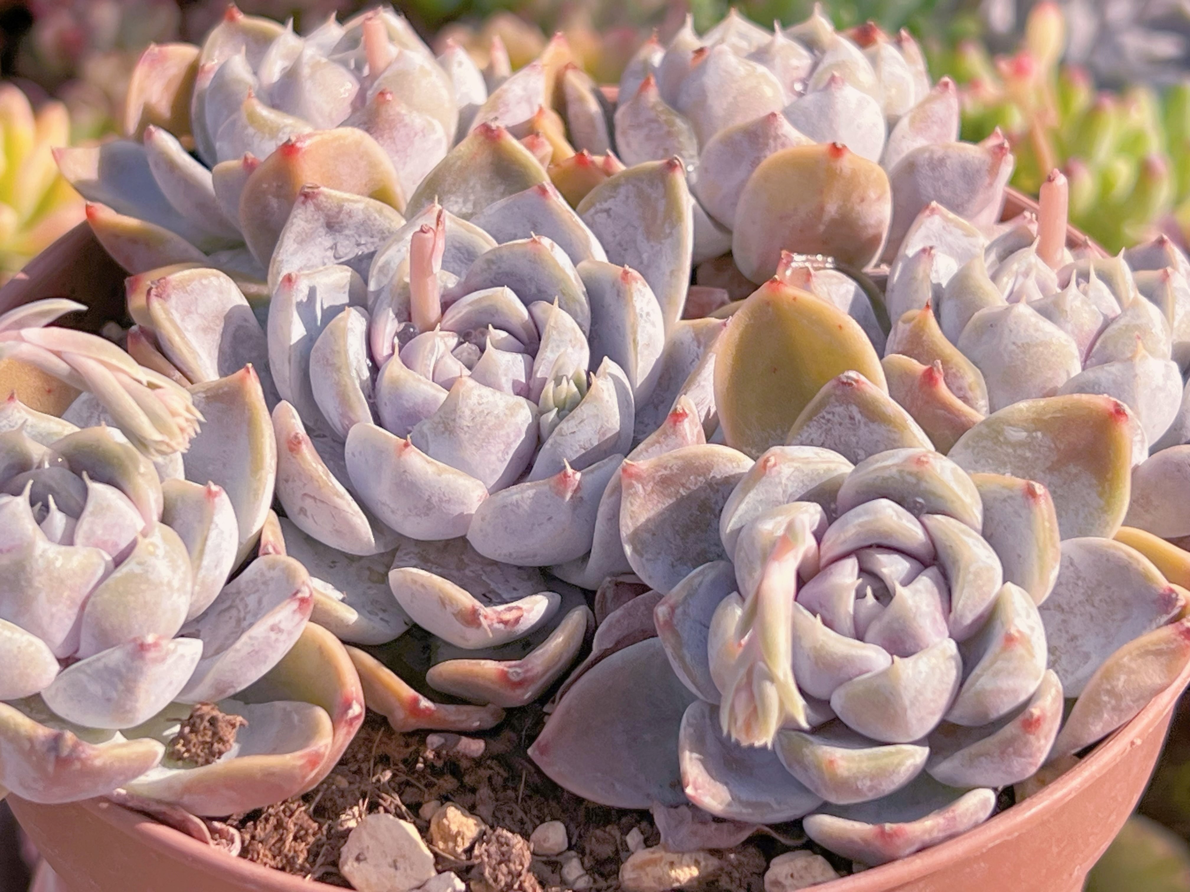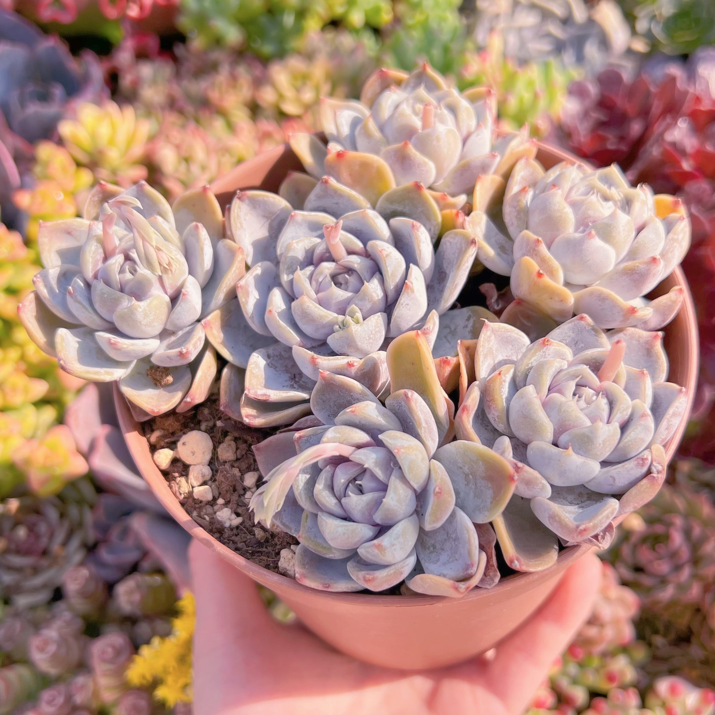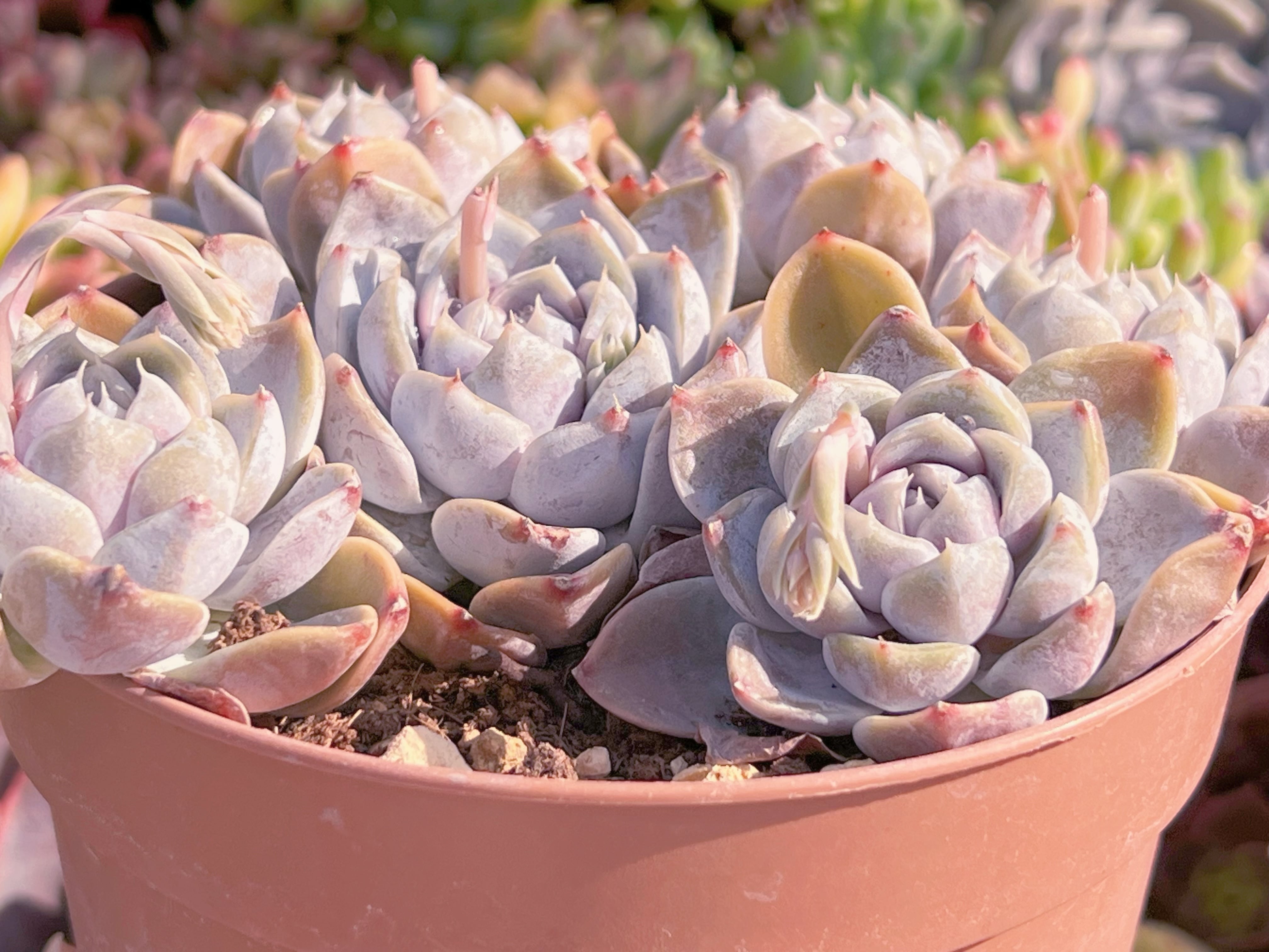 輸送過程での土こぼれや蒸れなどを勘案し、写真のように植えた状態でのお届けは致しておりません。ご理解ご了承願います。